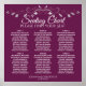 Faites de votre réception de mariage une belle avec ce tableau de 6 places. Dispose d'un design simple mais élégant avec du texte blanc sur un arrière - plan mauve magenta ou cassis avec un faux fil argenté floral filigree. Ce graphique montre les affectations de table pour 60 invités.