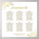 Ce tableau de 6 places est à la fois simple et élégant, avec du texte en or sur un arrière - plan blanc et un floral en dentelle dans les coins. Le titre dit "s'il vous plaît trouvez votre table" dans une élégante calligraphie de script. Sophistiqué et chic. Comprend l'assignation de table pour 60 personnes avec 10 sièges par table.