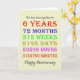 6th wedding anniversary card counting down the years, days, months, hours, and minutes that you have been married. Funny, but with a romantic verse inside. A card to give pause for thought! Leap years have been taken into account!