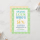 Beautiful blue green yellow blue, pastel tones, pleasent and complimentary colours. Great design for birthday invitation and clever 6th birthday wording.