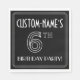 This luxurious 1920s/1930s era inspired art deco style birthday paper napkin design features a personalized name, along with the message “6TH BIRTHDAY PARTY!”. The number “6TH” has a fancy geometric lined look. Stylish paper napkins like this might be fun to use at a party in honour of somebody’s sixth birthday, or some other 6th event. [~Z0000659]