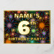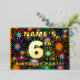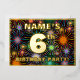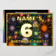 The front of this joyful sixth birthday celebration/party foil invitation card design features an editable name, a large number “6th”, the message “BIRTHDAY PARTY!”, and a border. The background of the front features an eye-catching, colourful pattern that resembles bursting celebratory fireworks. The back features personalized details about the event, such as the date, time, venue, and any other information that may be relevant. Editable invitations like these might be a fun way to invite attendees to a birthday gathering being held to celebrate somebody’s 6th birthday. [~Z0000602]