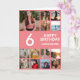 6th Birthday Photo Collage 13 Photos Pink & White Card
