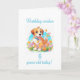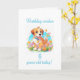 6th birthday card for a child who loves his puppy dog. A cute puppy smiling to say happy 6th birthday. A brown puppy with flowers and butterflies sending birthday wishes.