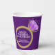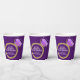 Amethyst and gold ring modern fun fact and wedding anniversary party paper cups. Personalize these 6th wedding anniversary cups with your own name and fun facts about your couple. Other matching items are also available. © Original graphic ring design by Sarah Trett for www.mylittleeden.com and www.mylittleedenweddings.com on Zazzle.