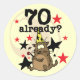 Humourous 70th birthday T-shirts, birthday buttons, cards, mugs, stickers, and other 70th birthday apparel and gift items featuring a silly cat in a party hat and text that asks "70 Already?".