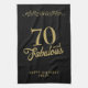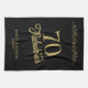 70 and Fabulous Elegant Ornament 70th Birthday Black kitchen towel. 70 and fabulous saying in trendy golden script and a gold ornament. Personalize it with your name and the age.
