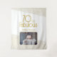 70 and Fabulous Gold Glitter Photo 70th Birthday Photo Backdrop Tapestry. Modern birthday backdrop with trendy typography and faux gold glitter dots. The design has a custom photo and name. Make personalized 70th birthday tapestry for her.