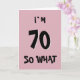 70 so What Funny Pink Quote 70th Birthday Card. Funny and inspirational quote I`m 70 so what - trendy black typography on pink background. Perfect for a person with a sense of humour.