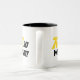 70 So what Funny Quote 70th Birthday Two-Tone Coffee Mug. A great birthday gift idea for a man or a woman who celebrates 70th birthday and has a sense of humour. The text reads 70 So what - you can change the age. The text is in yellow and black.