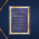 Une carte d'invitation branchée et moderne pour 70ème anniversaire pour hommes, hommes, hommes. Un arrière - plan bleu foncé, bleu marine. La couleur bleue est inégale. Avec un cadre en faux or et des confettis dorés saupoudrés, des lettres de couleur dorée. Modèles pour vos informations de fête. Retour : conception simple de carte postale.