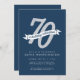 Célébrez 70 ans avec cette invitation bleu marine et argent avec une bannière et un grand 70.