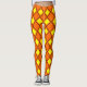 These leggings have a 1970s design of solid yellow diamonds inside brown diamond outlines on a field of orange.