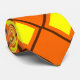 This necktie has a 1970s design of solid yellow diamonds inside brown diamond outlines on a field of orange.