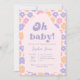 Celebrate the arrival of a little one in groovy style with this Oh Baby Shower Invitation, featuring a perfect blend of 70s hippie floral design and classic gingham plaid. The playful “Oh Baby!” headline paired with retro-inspired flowers and soft pastel colours makes this invite ideal for a gender-neutral baby shower or a dreamy celebration for a baby girl or boy.