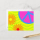 70's Hippie Peace Sign and Flowers Postcard