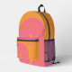 70s Inspired Line Art - Orange Pink Rainbow Arch Printed Backpack