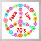 Share your love for the 1970's with this pretty retro design with a peace sign made of flowers and the words - Peace Love 70's. Great gift for a 70s music lover.