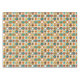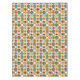 This funky 1970s retro style patterned tablecloth features circles of brown, teal blue, white, and two shades of orange. This is sure to be an eye catcher on your table!