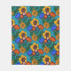 70s Retro Floral Blue Fleece Blanket