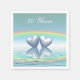 Napkins with my original design of two platinum hearts floating on the water under a rainbow. Customizable text says "70 Years".