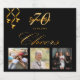 A bottle label for a glamourous 70th birthday party. Personalize and add 3 of your own photos, a name, age 70 and a date. Date of birth or the date of the party. Golden coloured letters. The word: Cheers, in faux gold written with a trendy hand lettered style script. Elegant, classic chic black background colour, decorated with faux gold party streamers.