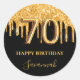 Elegant, classic, glamorous and girly for a 70th birthday party. A chic black background. Decorated with faux gold glitter drips, paint dripping look. Personalize and add a name. With the text: Happy Birthday. The name is written with a modern golden colored hand lettered style script. Number 70 is written with a balloon style font.