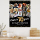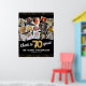 Elegant 70th birthday party picture poster featuring a stylish black background that can be changed to any colour, a 15 photo collage through the years, the saying 'cheers to 70 years', gold glitter edges, their name, and the date of the celebration.