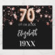 A classic black background decorated with rose gold stars. Personalize and add a date, name and year of birth. Age number written with a balloon style font.