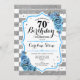 Elegant design in faux glitter silver, white and turquoise aqua blue. Features stylish script fort, stripes and blue roses. Perfect for an elegant birthday party. Can be customized into any age.