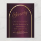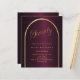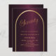 An elegant 70th birthday invitation. A burgundy background with a golden arch on the front.
