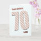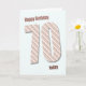 A very modern 70th birthday card. This card is truly fabulous. Big letters in modern stripes on a blue background. Customize for your own unique message.