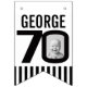 70th black on white add your own three photos birthday bunting flags. Personalize with your own honouring name and three photos in the 0 of 70. Uniquely design by www.mylittleeden.com