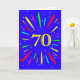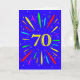 An explosive 70th birthday card! What a wonderful way to send birthday greetings. The number 70 in bright yellow with an explosion of bright colours and stars.