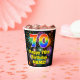 This cheerful and joyful birthday themed paper cup design features a large number “70” having a rainbow spectrum gradient inspired pattern. It also features the message “Happy 70th Birthday,”, and a customizable name. The background features a colourful pattern inspired by the appearance of bursting celebratory fireworks. Vibrant, colourful paper cups like this might be fun to have at a birthday party being held to celebrate somebody’s 70th birthday. [~Z0000539]