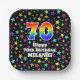 70th Birthday: Fun Stars Pattern and Rainbow “70” Paper Plate
