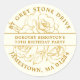Add a special touch to all your 70th Birthday invitation envelopes with this elegant round design. It features a bouquet of gold roses in the centre. Open line art gives it a vintage botanical vibe. The birthday celebrant's name and 70th birthday party are written across the centre on a white strip. Your address is added in curved text above and below the floral bouquet. This item is part of the Luxe Gold Rose collection. You'll find many coordinating items to create a unique invitation suite, welcome signs and party decorations.