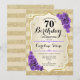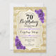 70th Birthday - Gold Stripes Purple Roses Invitation