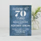 70th Birthday Invitation Blue Linen Rustic Cheers