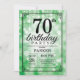 70th Birthday Invitation with Green String Lights with Green Glitter Background. Green Birthday. Adult Birthday. Men or Women Bday Invite. 13th 15th 16th 18th 20th 21st 30th 40th 50th 60th 70th 80th 90th 100th, Any age. For further customization, please click the "Customize it" button and use our design tool to modify this template.