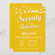70th Birthday Invitation with String Lights Yellow Background. Woman Birthday Party. Seventy and Fabulous. Any age. For further customization, please click the "Customize it" button and use our design tool to modify this template.