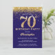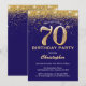 70th Birthday Navy Blue and Gold Glitter Confetti Invitation