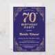 70th Birthday Navy Blue and Gold Glitter Frame Invitation