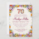 Invite friends and family in style with this elegant floral invitation. A vibrant mix of watercolor‑style flowers frames your personalized details, making it a beautiful way to announce a 70th birthday celebration. Perfect for spring or summer gatherings and fully customizable. Enjoy!