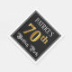 This opulent and ornate birthday themed paper napkin design features a custom name and the message “70th Birthday Party”. The large number “70th” has an imitation/faux gold-inspired colouring pattern, and the words “Birthday Party” are in fancy script-style text. The background is coloured black by default (although it can be customized). Fancy, elegant paper napkins like this might be used at a birthday celebration/party being held to honour somebody’s seventieth birthday. [~Z0000565]