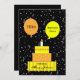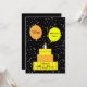 This fun 70th birthday party invitation features a triple layer cake with the name of the honoree. The birthday party details are on the back of the invitation making for a very fun 70th birthday party invitation. Copyright henishouseofpaper
