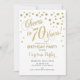 70th Birthday Party Invitation Design élégant avec fausse parties scintillant or et blanc. Salutations à 70 ans !