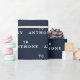 Personalized, modern, elegant, navy blue and white, 70th Birthday wrapping paper. Perfect for him. 70th birthday party.