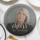 These custom 70th birthday paper plates feature the guest of honour's photo and birthday, along with the word "Cheers" in elegant gold-coloured calligraphy script. A dark screen helps make the text pop. A great way to celebrate someone who's turning seventy!