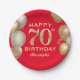 70th Birthday Party Red and Gold Balloons Paper Plate